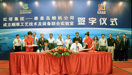 國(guó)家局科技司副司長(zhǎng)張虹出席了簽字儀式,并指出“紅塔集團(tuán)——秦皇島煙機(jī)公司煙草工藝技術(shù)及裝備聯(lián)合實(shí)驗(yàn)室的成立,有著極大的象征意義,對(duì)行業(yè)來(lái)講是一個(gè)非常好的典范”。