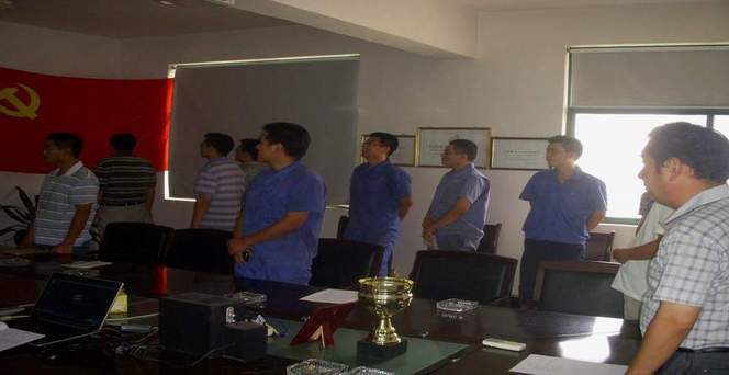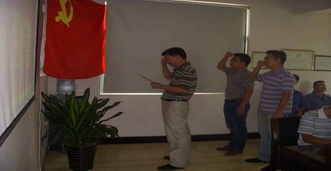 在紀(jì)念中國共產(chǎn)黨成立九十一周年之際,徐州眾凱公司黨支部于7月23日下午,為兩名預(yù)備黨員:楊進(jìn)成、楊鈺程,舉行隆重的入黨宣誓儀式。宣誓儀式在雄壯的《國際歌》聲中開始。