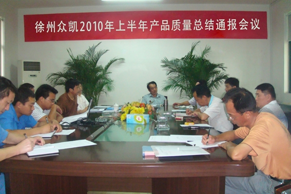 8月23日下午,徐州眾凱公司召開2010年上半年質(zhì)量總結(jié)通報會。公司董事長卓衛(wèi)民、總經(jīng)理許敬敏、總工程師李康勝、副總經(jīng)理吳霖等公司部門以上領(lǐng)導(dǎo)出席了會議,各部門領(lǐng)導(dǎo)、各室主任均列席會議。會議由生產(chǎn)部陳總主持。