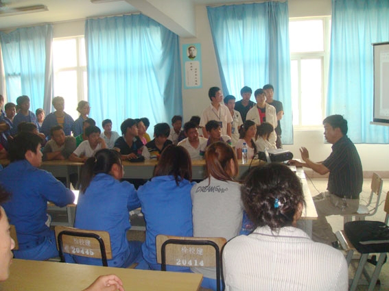 王總現(xiàn)場(chǎng)宣講,向?qū)W生介紹公司情況