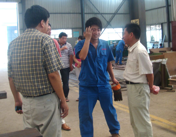 會后,在王總陪同下,校方領(lǐng)導(dǎo)深入車間生產(chǎn)現(xiàn)場,看望學(xué)生,與學(xué)生親切交談,鼓勵(lì)學(xué)生不要怕吃苦,不怕困難,謙虛謹(jǐn)慎,虛心向廠里的師傅學(xué)習(xí),適應(yīng)工廠的管理模式。以此提高對工作、對社會、對人生的認(rèn)識。