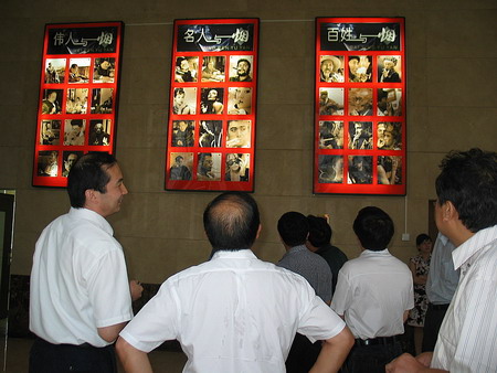 閆亞明院長(zhǎng)首先陪同客人參觀了鄭州院科技成果展覽以及“名人與煙”、“百姓與煙”等宣傳畫(huà),來(lái)訪客人們?cè)谛麄鳟?huà)前駐足良久,饒有興趣地爭(zhēng)相猜測(cè)名人的名字。周昌貢總經(jīng)理表示,這個(gè)創(chuàng)意非常好,反映了煙民的普遍性,看到他們,我們的工作才更有動(dòng)力。